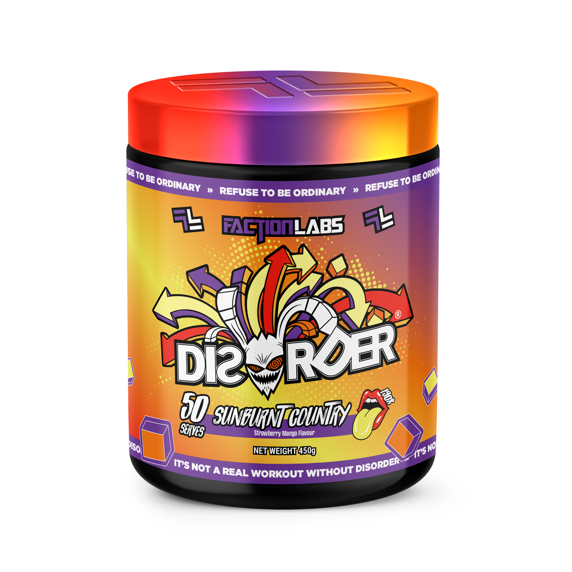 Disorder is a high-stim pre-workout formulated to deliver energy, focus, and performance support during intense training sessions. Each serving includes caffeine and a blend of popular performance ingredients designed to help maintain alertness and training intensity.
